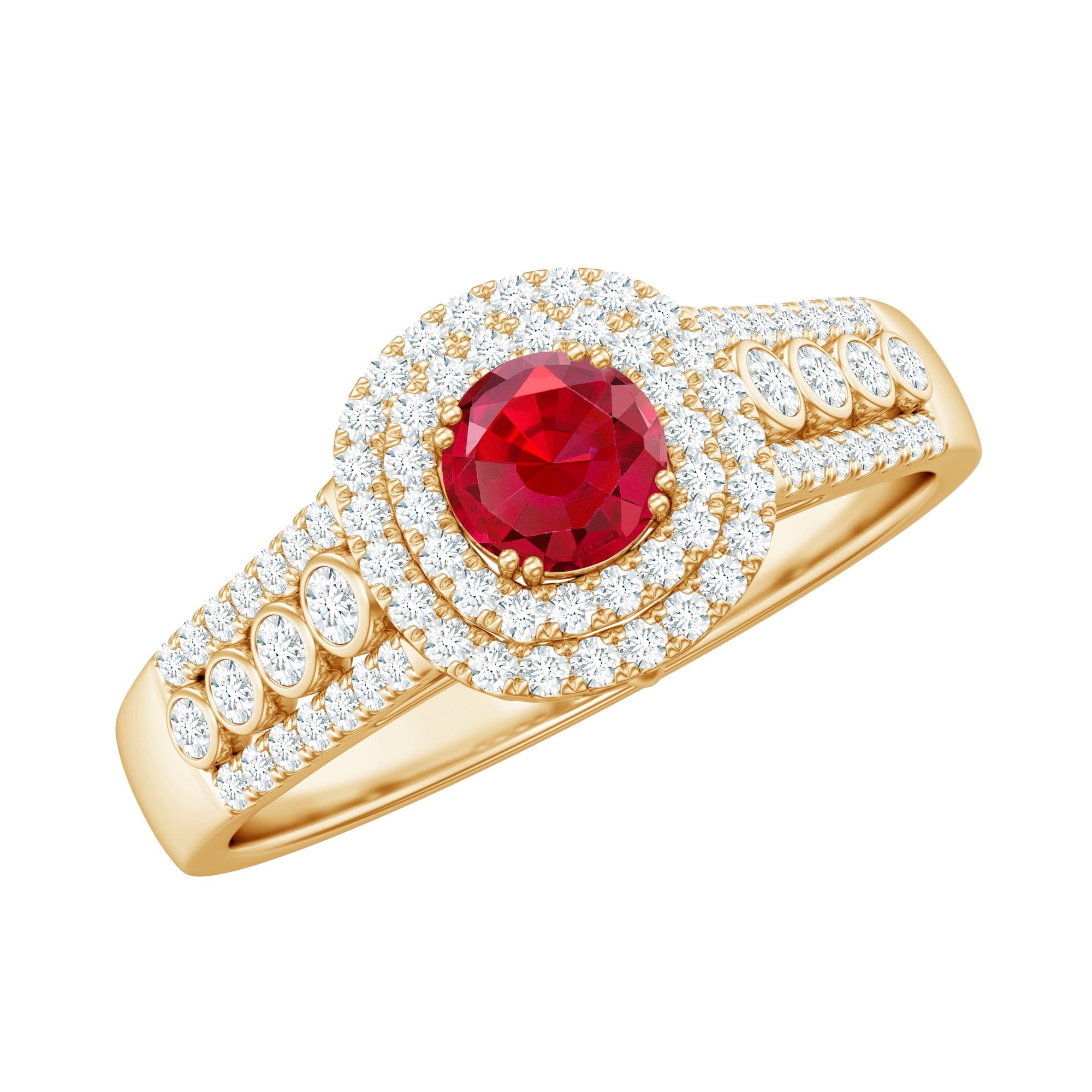 Antique Lab Created Ruby Ring With Moissanite Double Halo Aaaa Grade 14k Rose Gold Size Us 12 00 Walmart Com