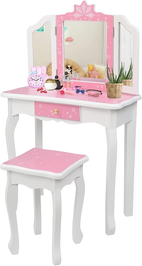 Bonnlo Kids Dressing Table Kids Vanity Table And Chair Set Princess Girl Dressing Table Set With Mirror And Stool Children Makeup Pretend Dressing Table With Two 180 Folding Mirror Pink Amazon Co Uk
